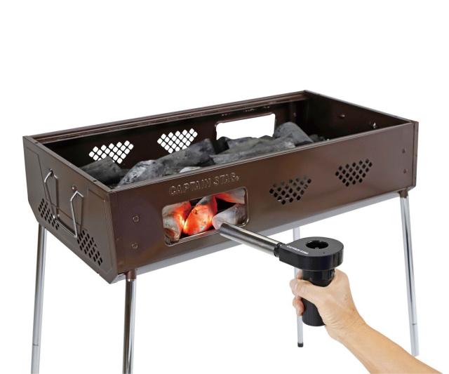 バーベキューや焚き火の火起こし作業を、格段に楽にしてくれる電動送風機です。うちわですると手が疲れるうえに灰が舞って不快な思いをしがちですが、電動送風機だと、スイッチひとつで風を送ってくれます。固定しておけばハンズフリーで作業することも可能です。