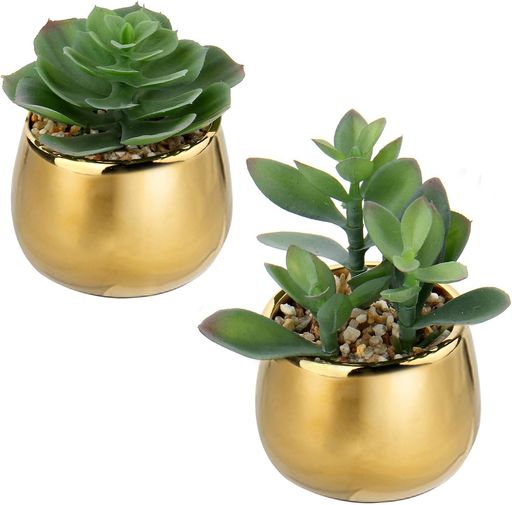 【美しい陶器鉢&配置の自由度】セラミックで作られた鉢は見た目の落ち着いた風合いで植物を引き立てます。陶器鉢は金色のころんとした丸いフォルムで、見た目は美しく高級感があり、人工多肉植物がよく映えます。多くの小石で飾るため、ナチュラル感更にアップ します。フェイクグリーンは季節や気候や光に左右されず、一年中美しい姿を楽しめます。テーブルの上、席の間、トイレや玄関に窓枠などあらゆる場所に観葉植物を配置できます。インテリアとして人気があります。