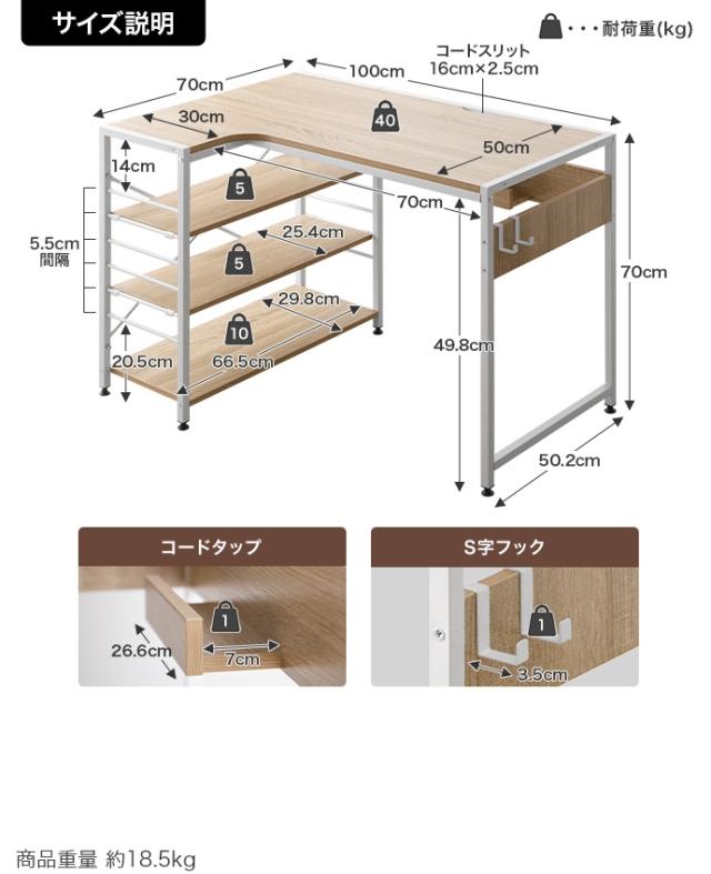 | 品名 | Elga L字デスク 幅100cm |