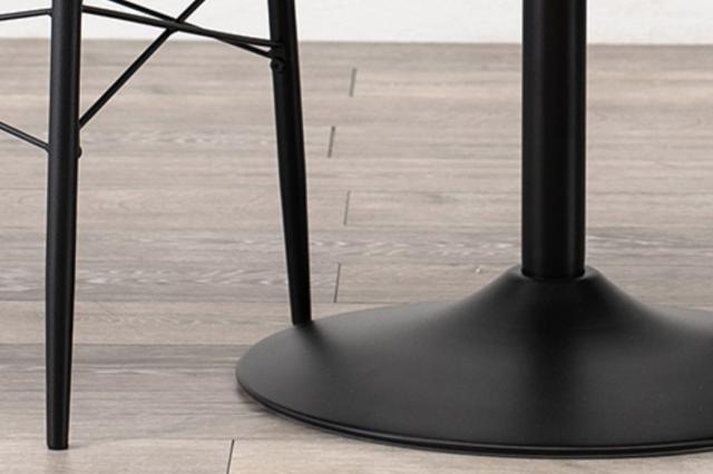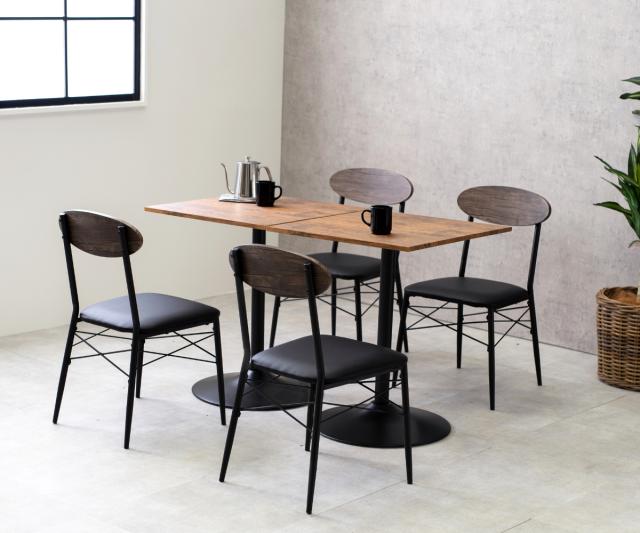 | 材質 | テーブル 天板:合成樹脂化粧繊維板(塩化ビニル樹脂) フレーム:スチール(粉体塗装) チェア 張り材:合成皮革 クッション:ウレタンフォーム 背もたれ:MDF フレーム加工:粉体塗装 |