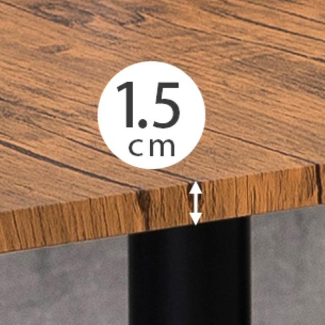 天板の側面まで美しい木目調のデザインを施しています。厚みはしっかり1.5cmあり、安定感も◎。