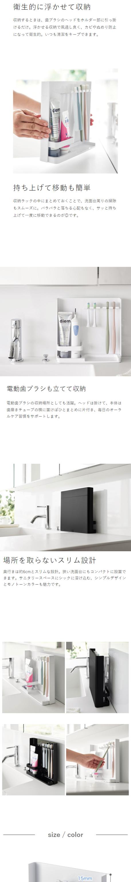 歯みがきグッズの収納に便利な歯ブラシ&チューブスタンド 。ハブラシ5本と歯みがき粉チューブ2本をまとめて洗面台まわりを整理整頓。裏返すと目隠し収納ができるので急な来客時も安心。
