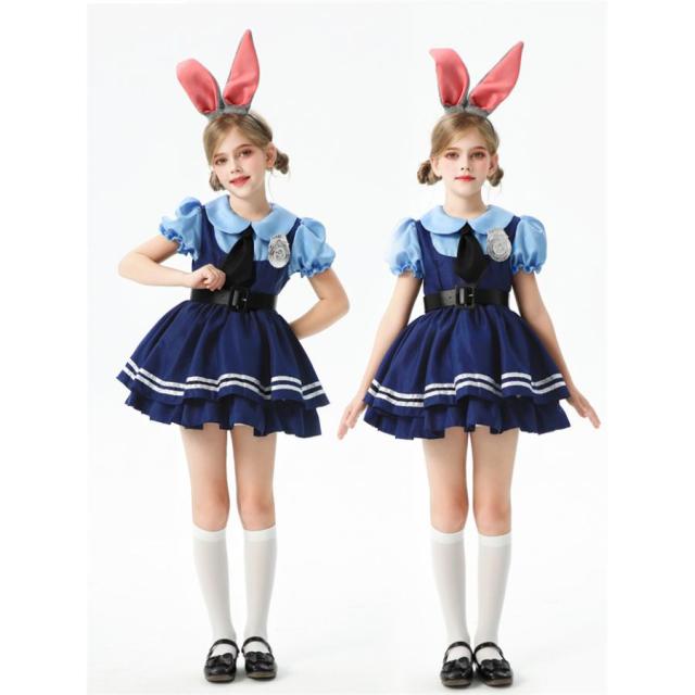 ハロウィンポリス衣装風 キッズ ポリス 女の子 うさぎ 大人 レディース コスプレ 警察 ハロウィン衣装 キッズ コスプレ 半袖 子供服 女の子警察官 警官 仮装
