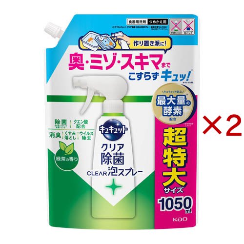 キュキュット クリア除菌CLEAR泡スプレー 緑茶の香り つめかえ用(1050ml×2セット)[食器用洗剤]