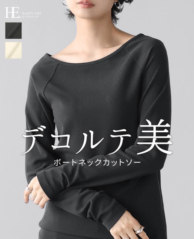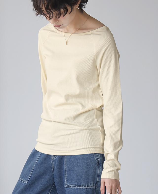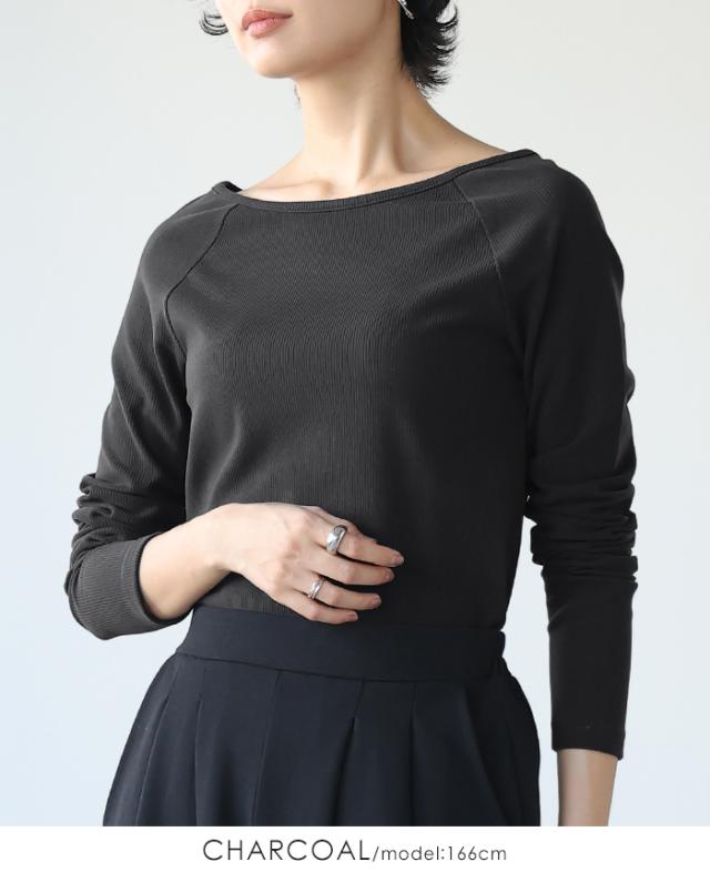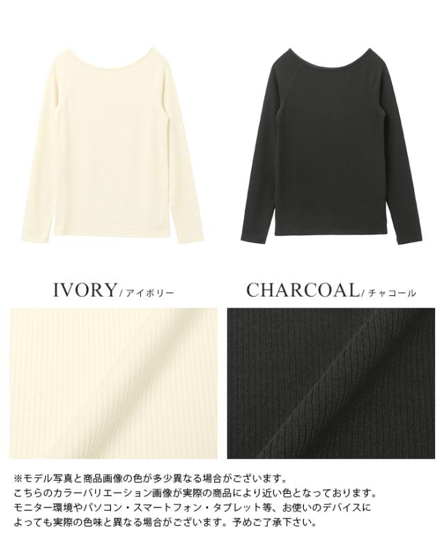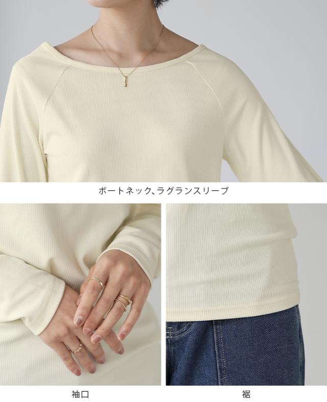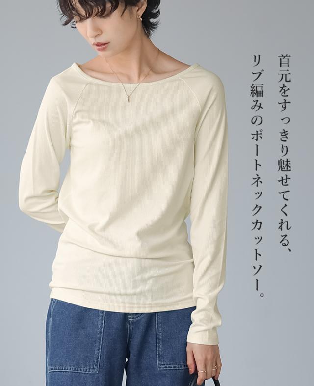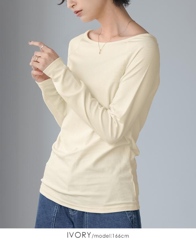 ボートネックトップス インナー 長袖 ボートネックロンT レディース 無地 シンプル カットソー リブ編み 【メール便1点まで】[M便 1/1]