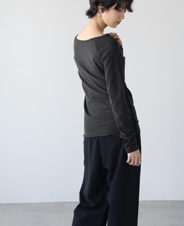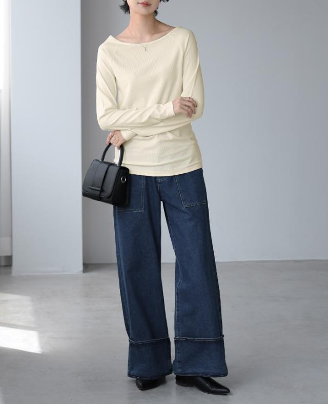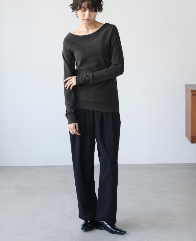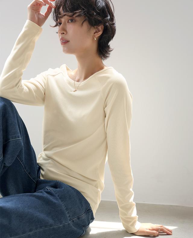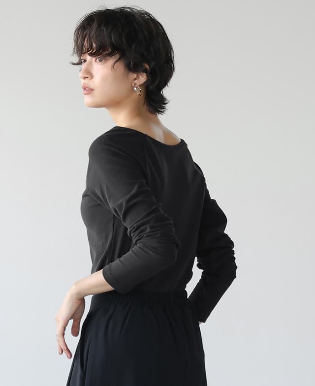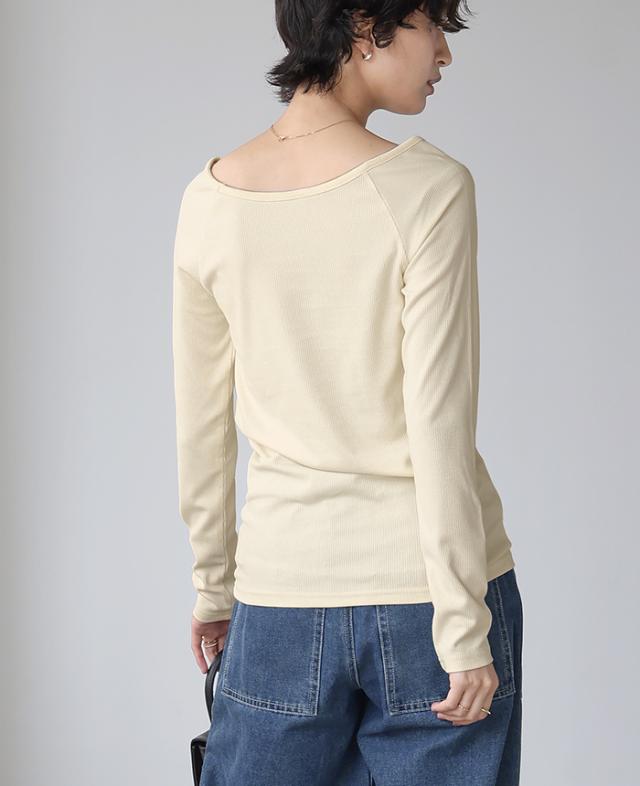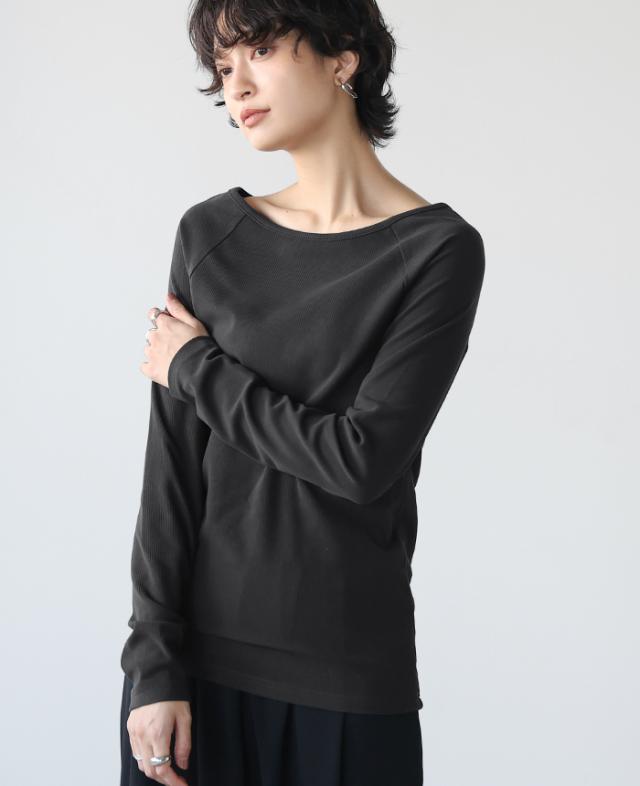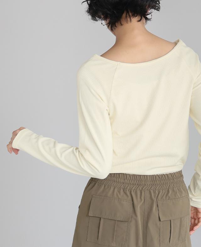 ボートネックトップス インナー 長袖 ボートネックロンT レディース 無地 シンプル カットソー リブ編み 【メール便1点まで】[M便 1/1]