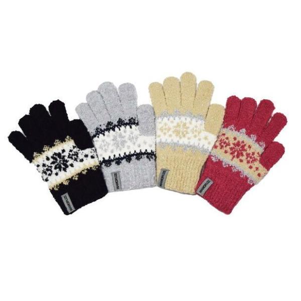 MAMORUZE 手袋 レディース 抗ウイルス 制菌 雪柄 抗菌加工 大人 ブラック グレー ベージュ レッド