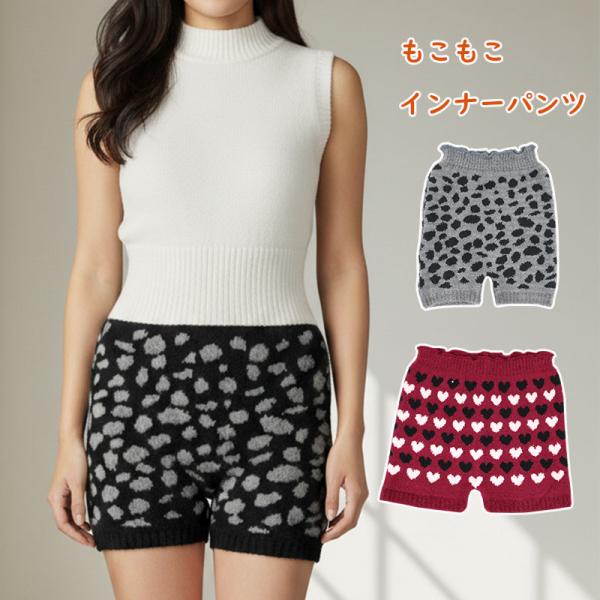 婦人 ニット パンツ 婦人 ハート ヒョウ柄 防寒 あったか 温かい 暖かい 毛糸 もこもこ ぽかぽか 可愛い かわいい レディース