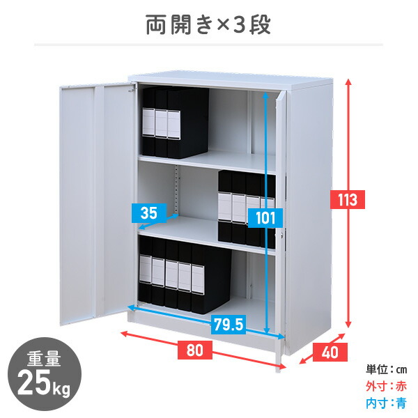 | 本体サイズ | 幅80×奥行40×高さ113cm 重量25kg 内寸法:幅79.5×奥行35×高さ101cm |