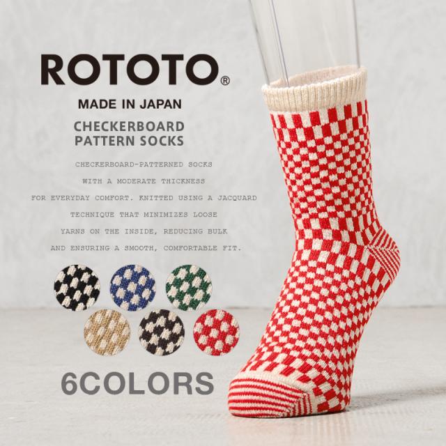 ROTOTO ロトト R1621 CHECKERBOARD PATTERN SOCKS チェッカーボード パターン ソックス 日本製【Cx】【T】|メンズファッション 靴下 クルーソックス アメカジ カジュアル ジャガード 綿 ファッションギフト