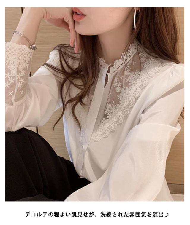 レース ブラウス レディース シアー レース シャツ 長袖 ブラウスシャツ 花柄レース ネック シャツ ブラウス スーツ チュニック レースインナー トップス レイヤード 大人 春 夏 羽織 シアーシャツ シフォン 大きいサイズ