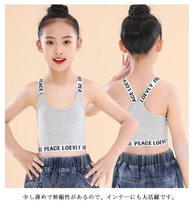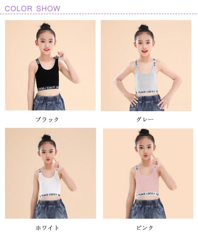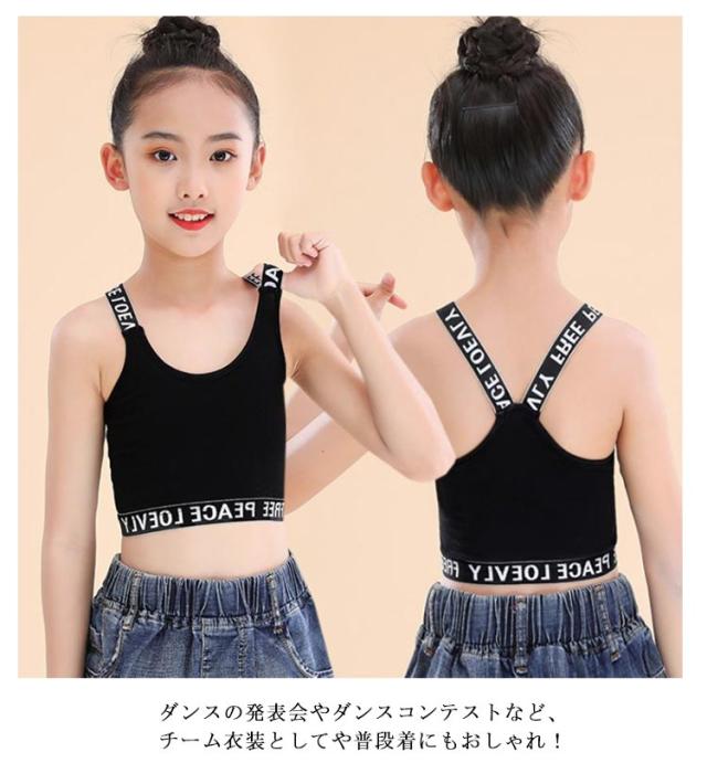 4枚セット タンクトップ キッズ キャミソール インナー 女の子 子供用 へそ出し ブラック ホワイト グレー ダンス スポーツ ブラトップ 衣装 ショート丈 ヒップホップ ダンス衣装 子供 肌着 アンダーウェア 重ね着 ハーフトップ 送料無料