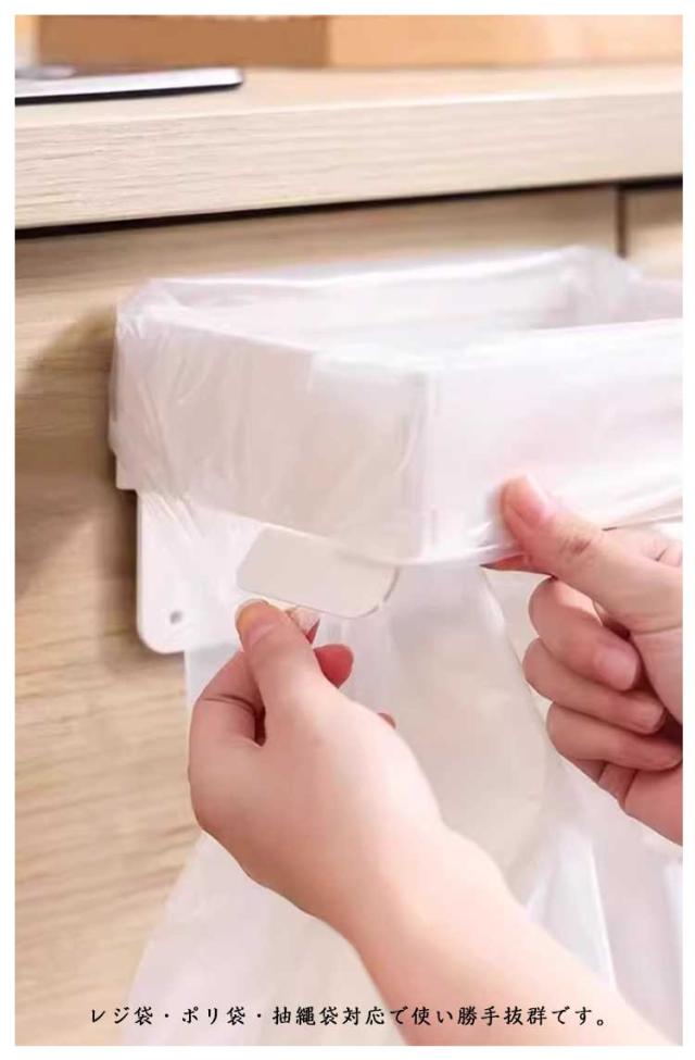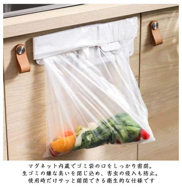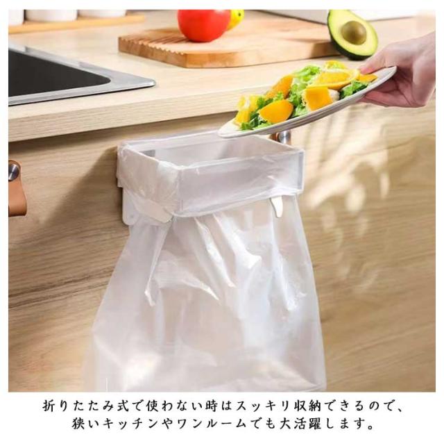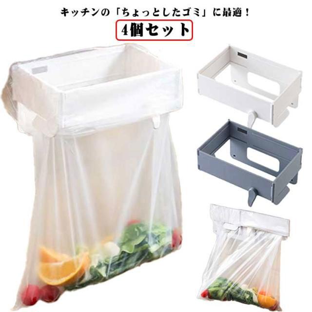 ゴミ袋ホルダー 4個セット 折りたたみ式 ポリ袋ホルダー レジ袋ハンガー 薄型 コンパクト 抽繩袋対応 キッチン収納 粘着フック取付 マグネット内蔵 消臭対策 省スペース ごみ箱代わり 送料無料 ぶら下げ