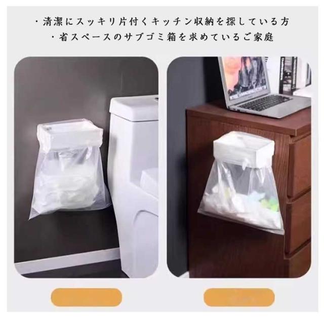 | キッチンの「ちょっとしたゴミ」に最適! 4個セット レジ袋やポリ袋をサッと掛けるだけで、簡易ゴミ箱に早変わり。 折りたたみ式で使わない時はスッキリ収納できるので、狭いキッチンやワンルームでも大活躍します。 レジ袋・ポリ袋・抽繩袋対応で使い勝手抜群です。 マグネット内蔵でゴミ袋の口をしっかり密閉。生ゴミの嫌な臭いを閉じ込め、害虫の侵入も防止。使用時だけサッと開閉できる衛生的な仕様です。 粘着フックで壁、キャビネットなどところに簡単設置できます。 キッチンだけでなく、寝室や洗面所、デスク横で簡易ゴミ箱として利用したり、アウトドアや車内でも便利なゴミ袋ホルダーです。 こんな方におすすめ ・調理中に出る野菜くずやパックのゴミをすぐに捨てたい方 ・大きなゴミ箱を置きたくない一人暮らしの方 ・清潔にスッキリ片付くキッチン収納を探している方 ・省スペースのサブゴミ箱を求めているご家庭 | |