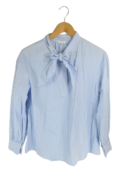 【中古】テチチ Te chichi プルオーバー シャツ 七分袖 ボウタイ リボン ストライプ ブルー ホワイト F レディース