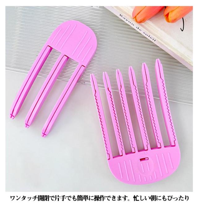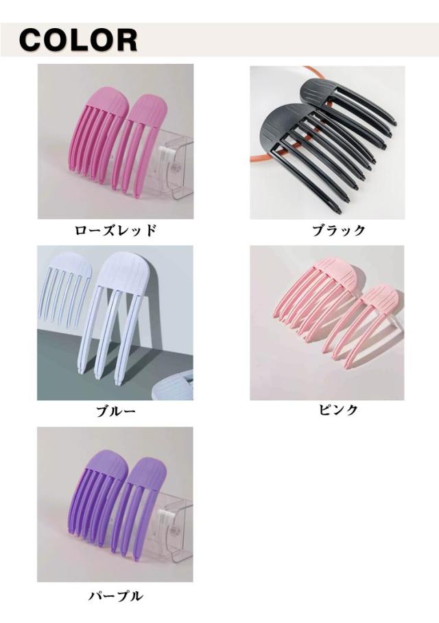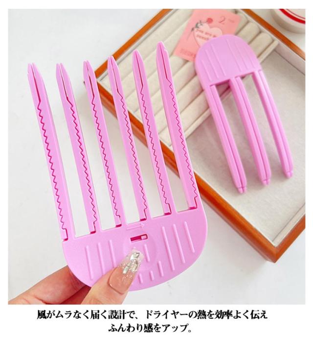| 根元立ち上げクリップ 6歯+3歯【8個セット】 髪をしっかりキャッチするギザギザ構造。細い毛も逃さずホールドします。 深めの溝構造で、ボリュームのある髪でもずれにくい設計。 ワンタッチ開閉で片手でも簡単に操作できます。忙しい朝にもぴったり。 風がムラなく届く設計で、ドライヤーの熱を効率よく伝え、ふんわり感をアップ。 使い方 1. 前髪にクリップを差し込む 2. ドライヤーで温風を約30秒当てる 3. ゆっくりクリップを外す 4. 根元からふんわり立ち上がり完成 | |
