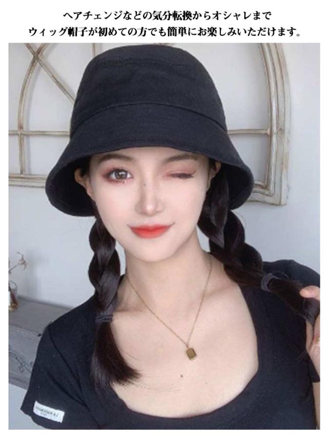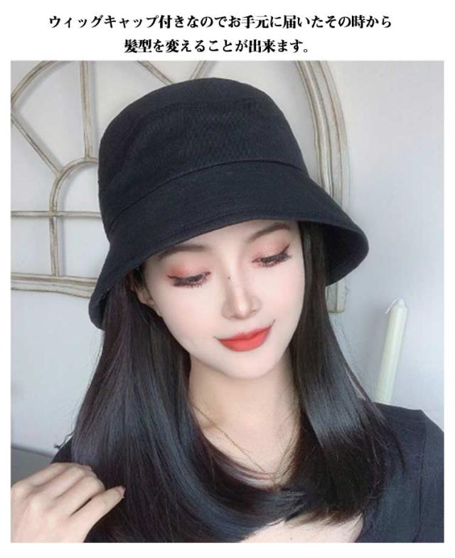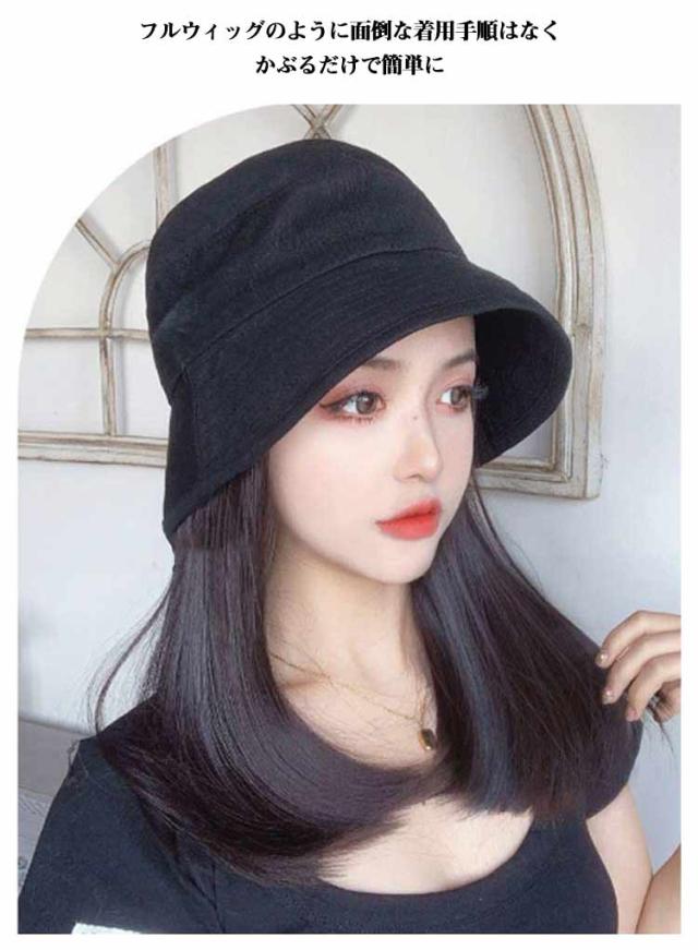 帽子付き ウィッグ 帽子 ウィッグ付き 帽子ウィッグ 帽子付きウィッグ ウィッグ付き帽子 毛付き帽子 バケットハット ミディアムショート キャップウィッグ ヘアチェンジ イメチェン 変装 コスプレ 髪付き ケア帽子 おしゃれ 送料無料