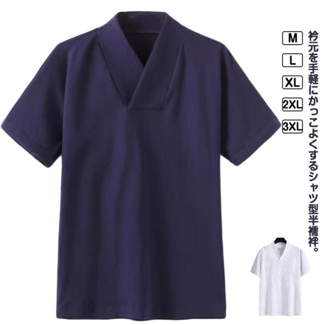 半襦袢 Tシャツ メンズ 着物 作務衣 浴衣 インナー 男性用 肌着 夏用 冬用 肌襦袢 衿付き 襟付き ストレッチ 和装下着 Vネック カットソー 洗える 襦袢 tシャツ プルオーバー レディース 男女兼用 大人 送料無料 ホワイト ネイビー