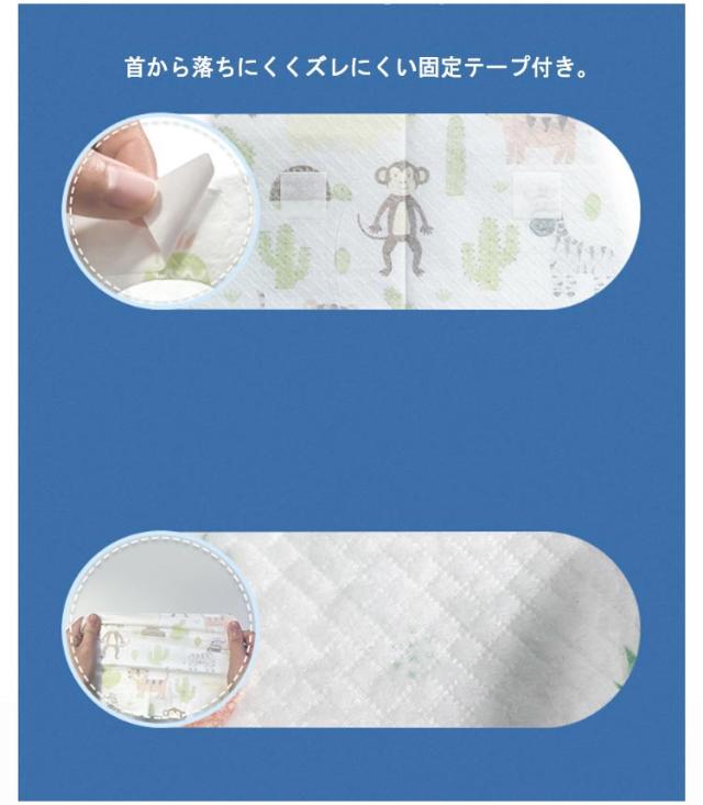 | 色ランダム発送!大人気子供用食事エプロン。100枚入り 使い捨てのお食事エプロンなので衛生的! ペーパービブよりも吸水力に優れた不織布のエプロンです。 首から落ちにくくズレにくい固定テープ付き。 破れにくい3層構造、しっかりとした不織布で作られており、離乳食の時期や食べこぼしの心配なし。 動物柄やパイナップル柄など、かわいらしいデザインが特徴。 お出かけや外食時にも便利な携帯用で、持ち運びが簡単。 裏には防水・漏れ防止の防水フィルムがついていますので、ミルク、お湯や水を飲む時も赤ちゃんの服を濡らす心配がありません。防水で通気性がよく、夏に着けても蒸し暑く感じません。 お気に入りの可愛いお洋服が汚れないように設計をさせていただきました。 男の子にも女の子にもぴったりなアイテムで、出産祝いにも最適です。 | |