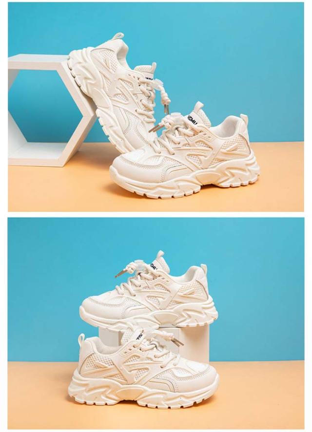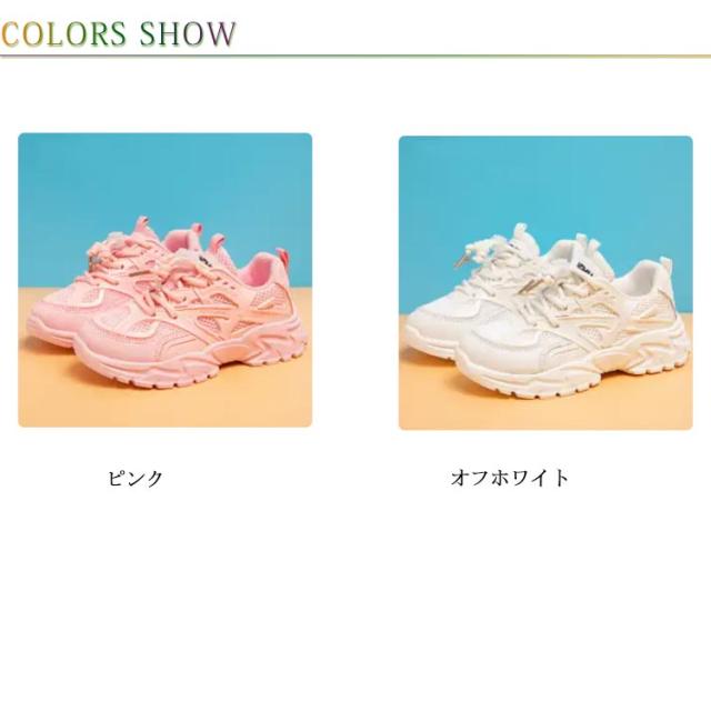 厚底スニーカー キッズ スニーカー 男の子 女の子 ダッドスニーカー 運動靴 小学生 通学靴 メッシュ ランニングシューズ 厚底 ローカット 脚長 結ばない ほどけない靴紐 ダンス靴 おしゃれ 通学 軽量 子供 ジュニア 白 ホワイト 18-23.9cm