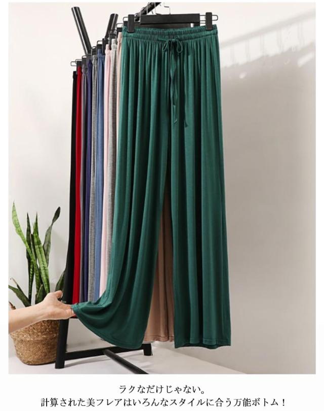 全10色選べる! ワイドパンツ レディース ロングパンツ フレアパンツ ガウチョパンツ ダンス ヨガパンツ リラックスパンツ ダンスパンツ イージーパンツ ルームウエア 部屋着 ルームパンツ シンプル 無地 楽チン 薄手 春 夏 秋 送料無料