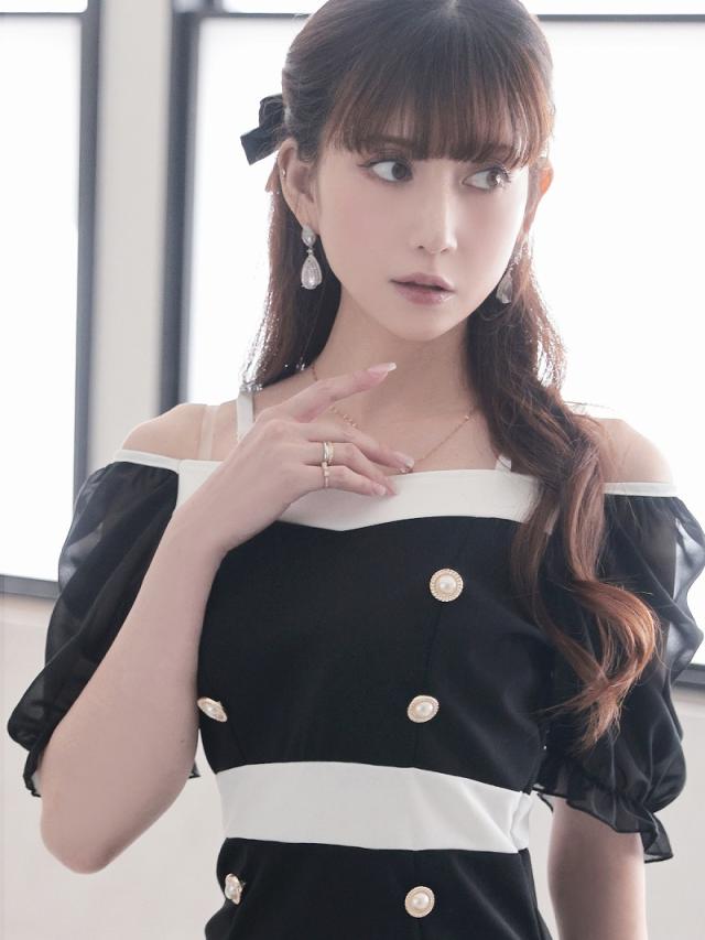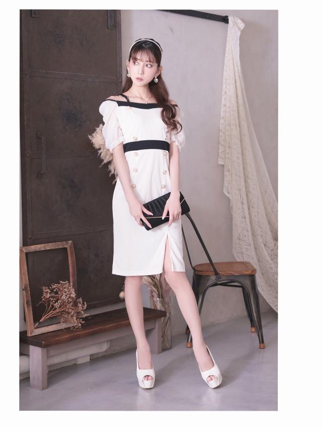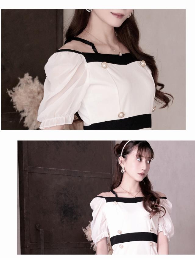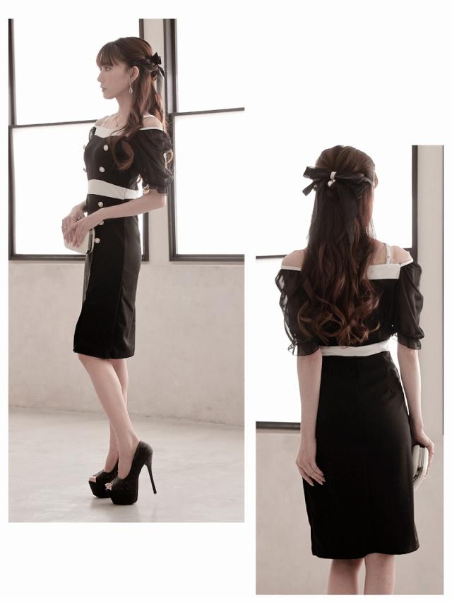 ミニドレス Belsia 袖付き シフォン袖 韓国風 クラシカル オフショル キャバ ドレス キャバドレス ミニドレス ミニ