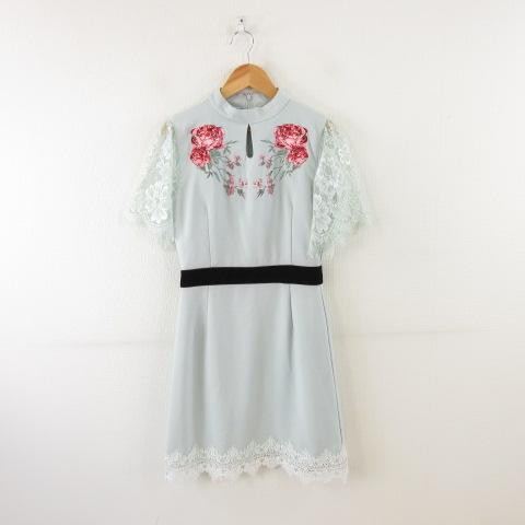 【中古】エミリアウィズ EmiriaWiz スタンドカラーローズ刺繍ワンピース ミニ 半袖 ライトブルー 青 M レディース