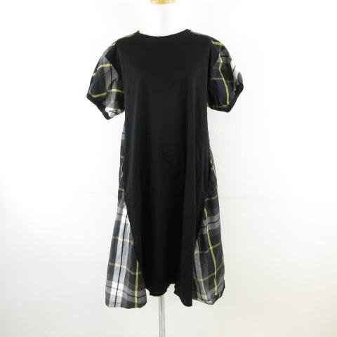 【中古】ヴィヴィアンスポーツ VIVIEN SPORTS ワンピース 半袖 ミディ丈 チェック 黒 11 *T68 レディース