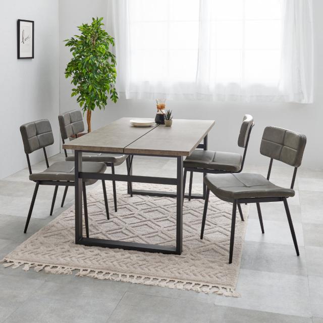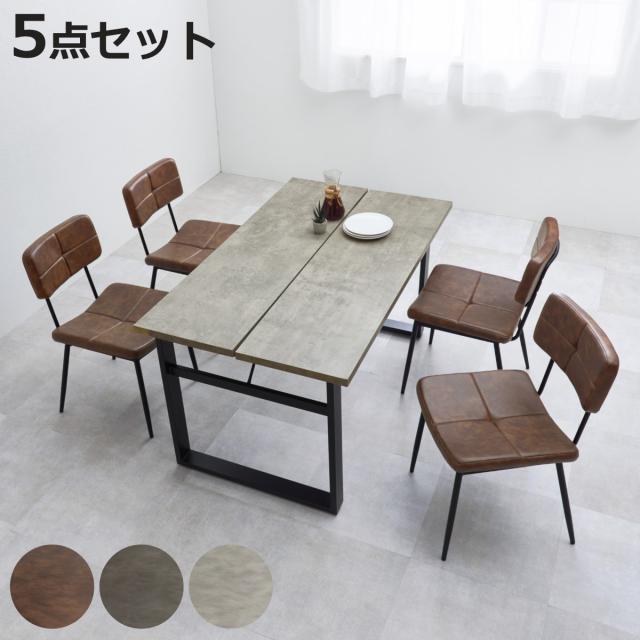 ダイニングテーブルセット 4人掛け 5点セット コンクリート調テーブル幅138cm チェア×4 ヴィンテージ調 ( ダイニングセット 食卓テーブル 椅子 チェア テーブル 4人用 ダイニングテーブル ダイニングチェア イス レザー調 )