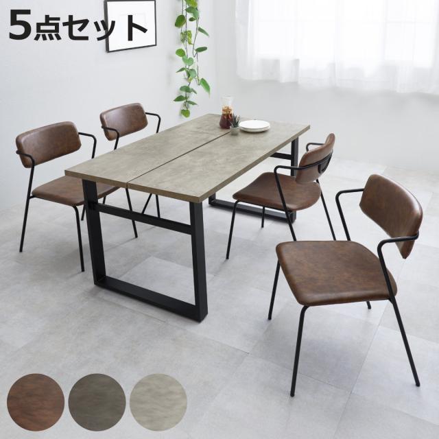 ダイニングテーブルセット 4人掛け 5点セット コンクリート調テーブル幅138cm チェア×4 Z型フレーム ( ダイニングセット 食卓テーブル 椅子 チェア テーブル 4人用 ダイニングテーブル ダイニングチェア イス レザー調 )