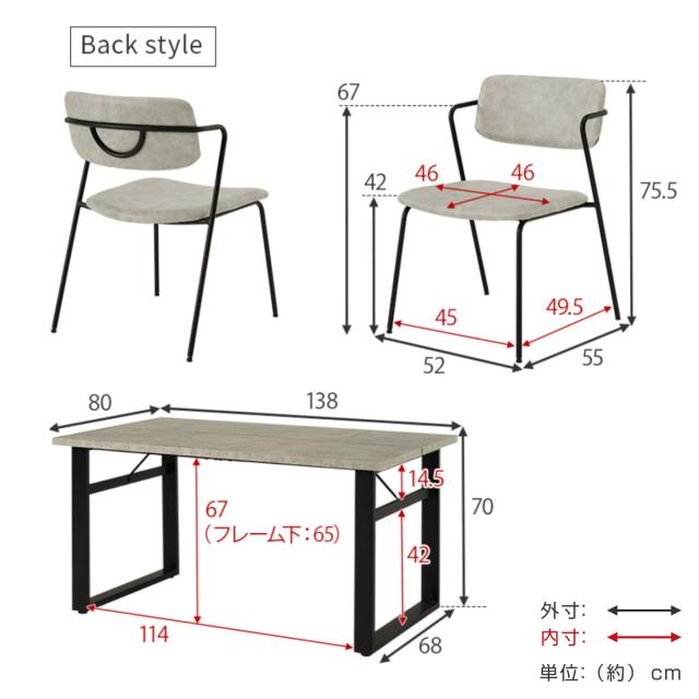 | サイズ | 【テーブル】 約 幅138×奥行80×高さ70(cm) 【チェア】 約 幅52×奥行55×高さ75.5(cm) |