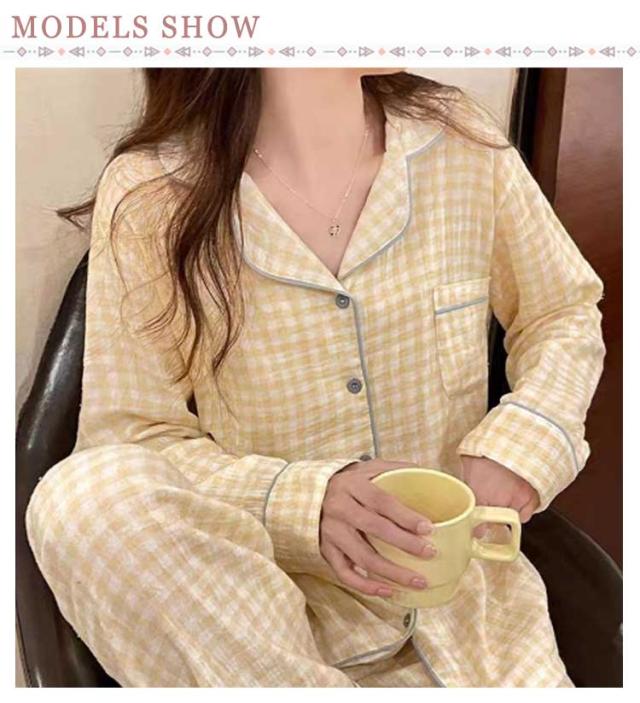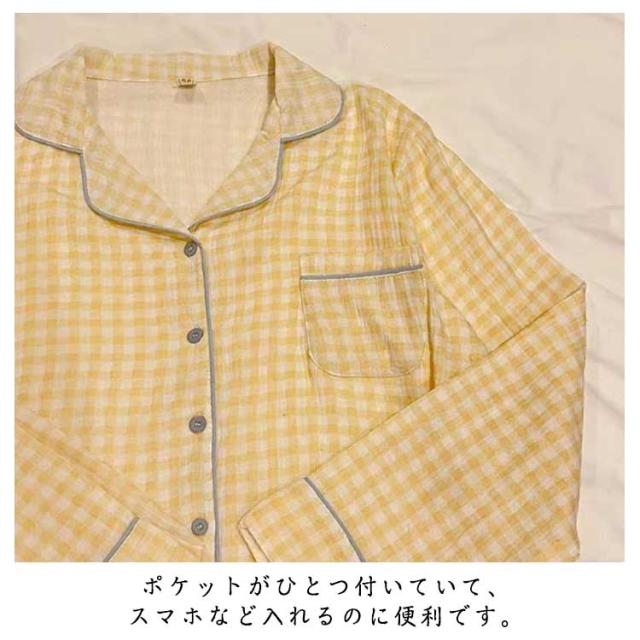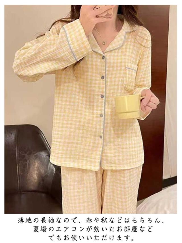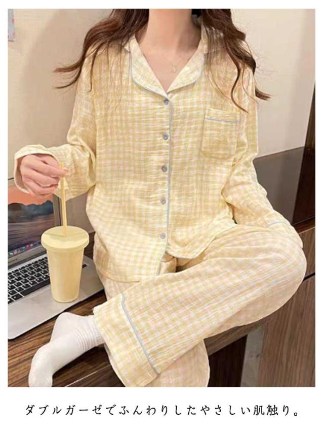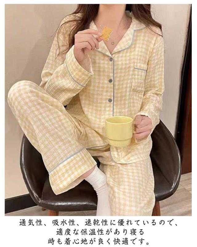 パジャマ ガーゼ 長袖 セットアップ パジャマ シャツ 前開き ルームウェア 柔らかい 大人 春 春 寝巻き 部屋着 パジャマ パジャマ 長袖 ズボン 上下セット 寝間着 ダブル 秋 ゆったり マタニティ 通気 肌に優しい コットン チェック 入院