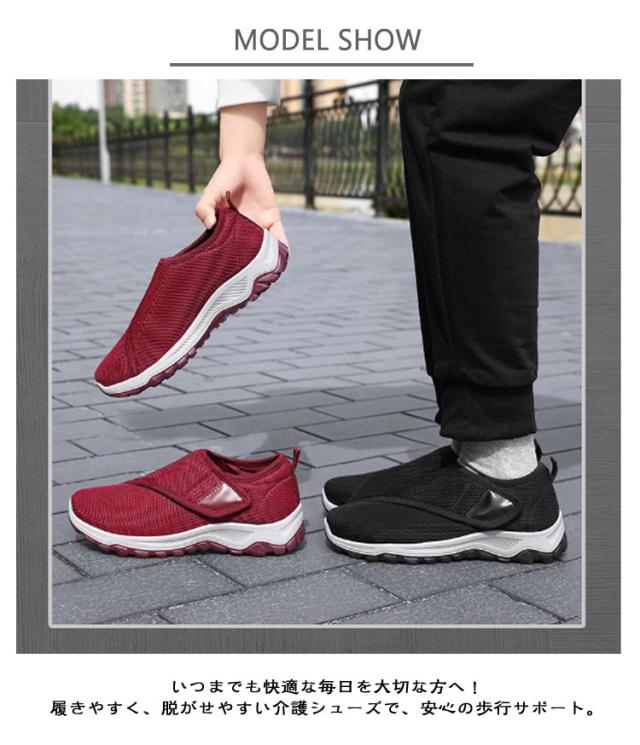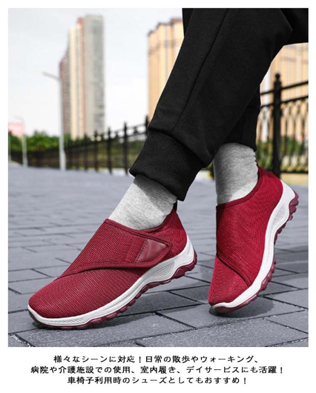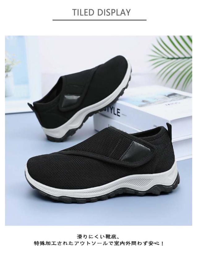 メンズ 介護シューズ 滑りにくい スリッポン 幅広 スニーカー リハビリ リハビリシューズ 黒 レディース 履かせやすい 防滑 介護シューズ 履きやすい 歩きやすい 軽量 ベルクロ マジックテープ シニア向け 介護 靴 疲れない 敬老の日 女性