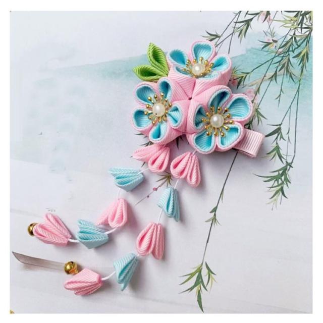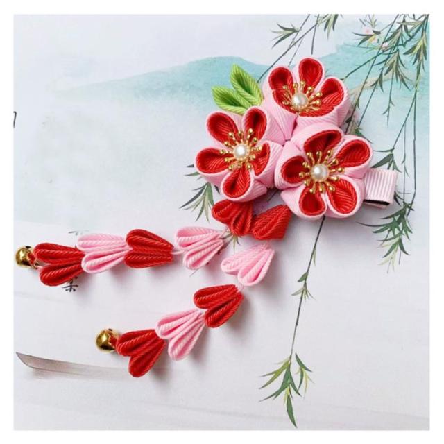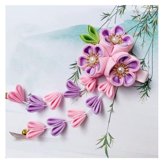 | 七五三髪飾り 七五三などのお祝いシーンに、繊細なつまみ細工の髪飾り。 水引飾りが可愛い七五三髪飾り!3才、7才 小学生の卒業式にも! 1つあればお顔周りがパッと華やぐので、特別な日の装いのワンポイントとして最適です。 | |