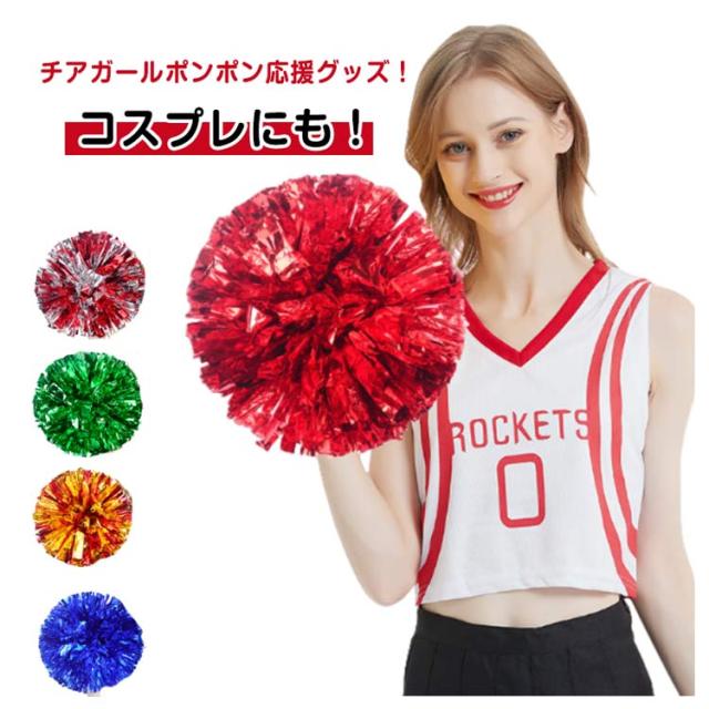 | チアガールポンポン応援グッズ!コスプレにも! 忘年会、運動会などイベントなどの応援合戦に使い易いポンポンです。 キラキラでメタリックなポンポンです チアダンスの小道具にピッタリなアイテム リングに指を通して使うハンドフリータイプなので、握力がなくても楽に使えます 運動会で踊るダンスの小道具、コンサート、応援グッズとしてもオススメです | |