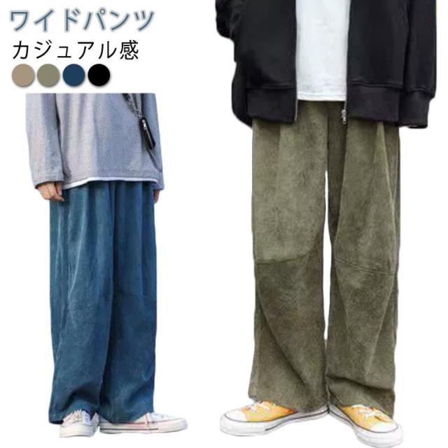 メンズ 無地 ズボン ワイド レディース カジュアル 黒 ゴムウエスト L コーデュロイ ワイドパンツ パンツ ブルー ボトムス M カーキ LL XL 全4色 秋冬 ユニセックス ワイドパンツ 秋服 秋物 冬服 冬物