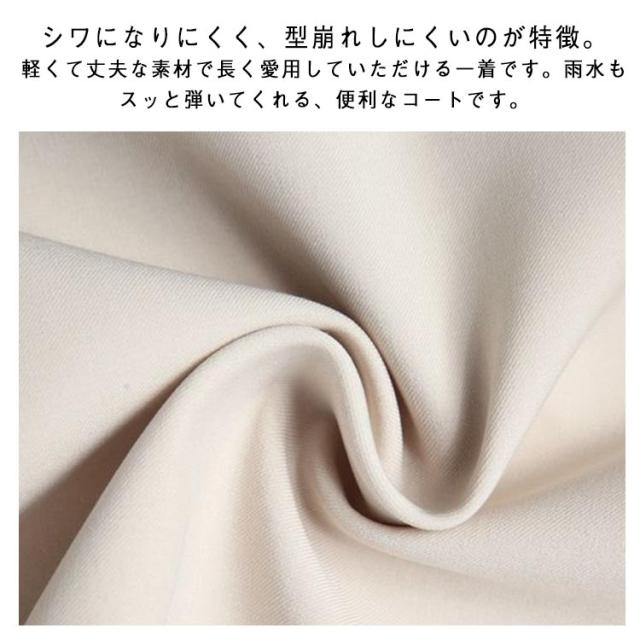 | ●デザイン なデザインのステンカラーコート。 飽きのこないシンプルなデザインなので、 流行に左右されず、愛用の一着として長くお使いいただけます。 表からボタン穴やボタンが見えないように、前立てを二重にした比翼仕立て。 ●素材 光にかざすとほんのりシルキーな光沢を放つポリエステル生地を使用。 シワになりにくく、型崩れしにくいのが特徴。 軽くて丈夫な素材で長く愛用していただける一着です。 雨水もスッと弾いてくれる、便利なコートです。 | |