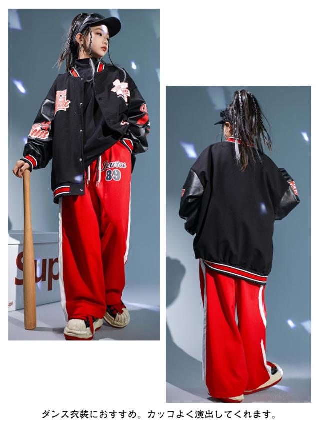 男の子 セットアップ 女の子 ジャケット ダンス衣装 派手 スウェットパンツ スタジャン スタジャン ワイドパンツ ロングパンツ スタジャン 黒 ズボン Tシャツ かっこいい ヒップホップ HIPHOP 子供服 ジャズダンス