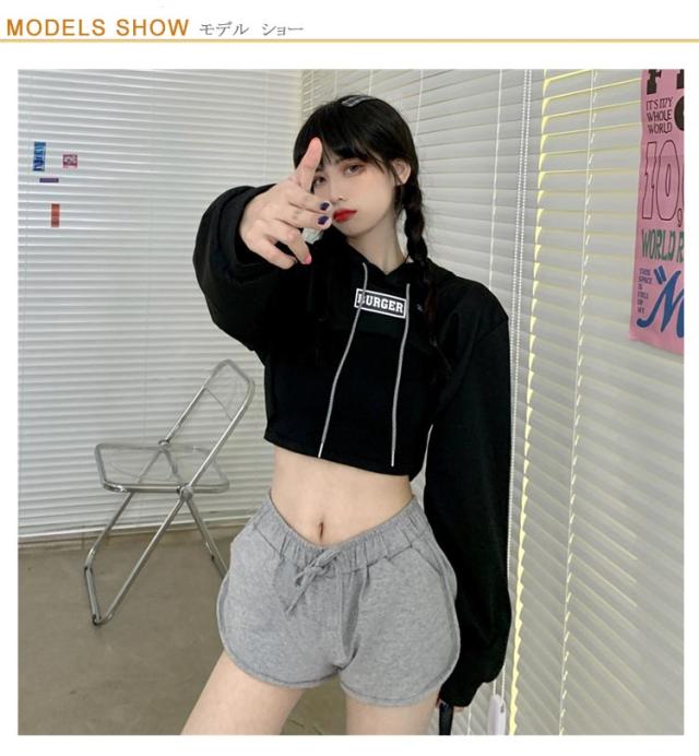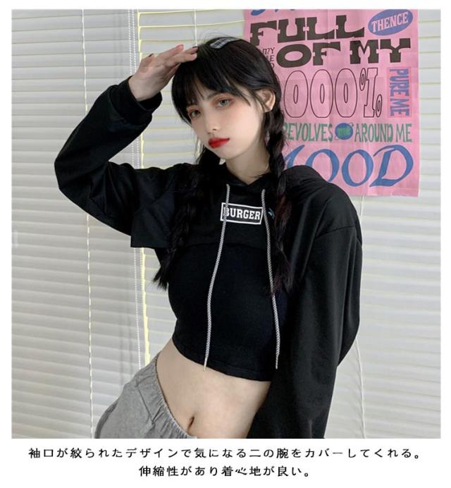 ダンス衣装 レディース ヒップホップ へそ出し へそ出しパーカー へそ出しパーカー パーカー 薄手 hiphop ジャズ ショート丈パーカー フード付き トレーナー トップス プルオーバー 長袖 春 夏 秋服 ストリート系 原宿系