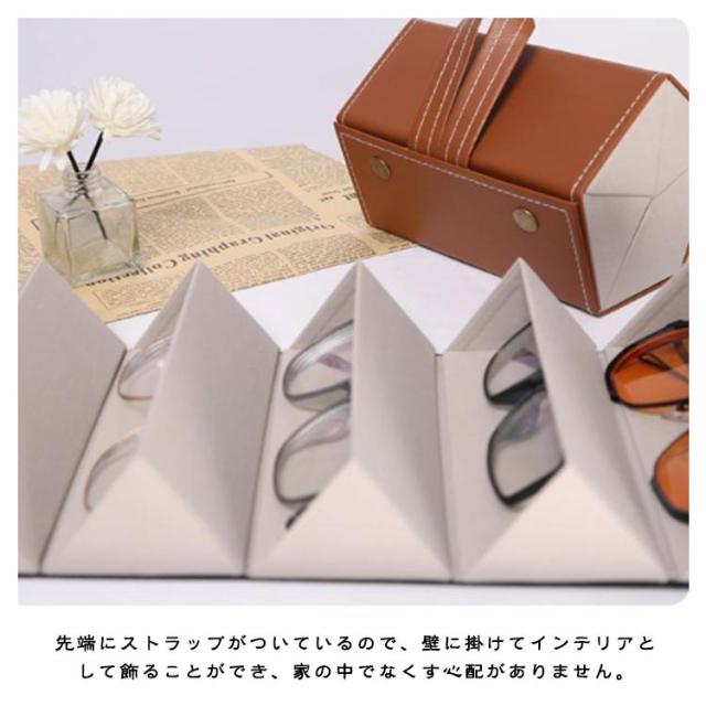 サングラス収納 壁掛け 眼鏡ケース サングラスケース メガネスタンド メガネケース メガネ収納 折り畳み式 サングラス収納 5本収納 4本収納 サングラス 複数収納 収納ケース メガネ置き PUレザー お洒落 持ち運び便利