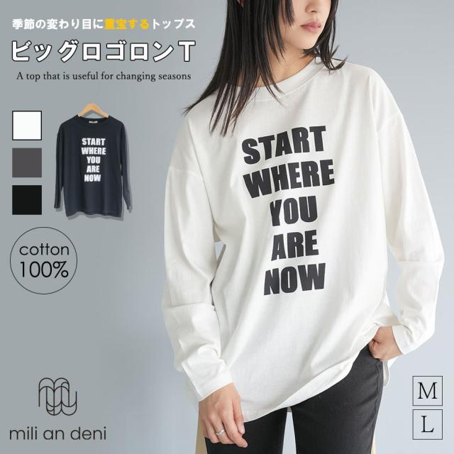 春新作 ビッグロゴロンT コットン クルーネック コットン 綿100% 長袖 M L トップス レディース 春夏 ミリアンデニ メール便(郵2) t92251