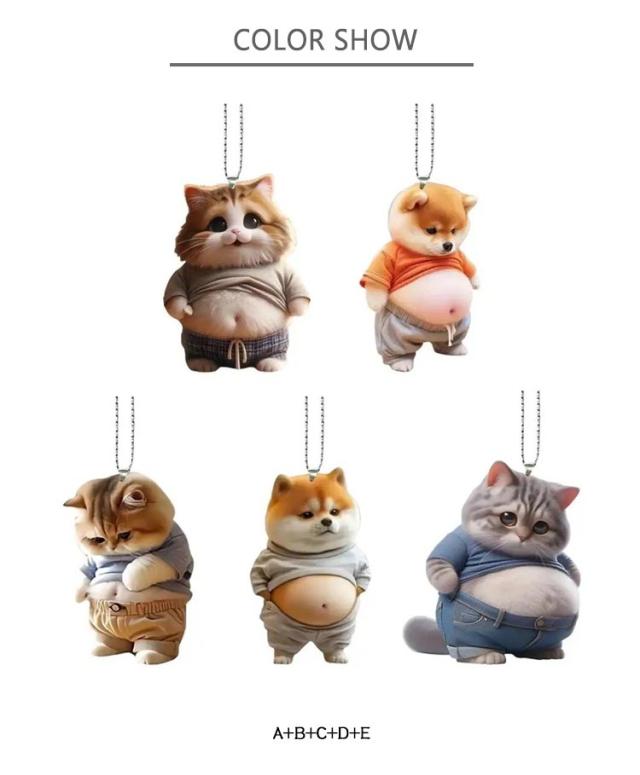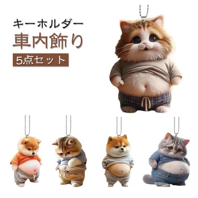 犬 マスコット デブ 5点セット 車内飾り キーホルダー 車ルームミラー飾り ボールチェーン 腹出し おもしろい アクリル かわいい 車のペンダント マヌケ 5点セット 車用吊り下げペンダント バックミラー装飾 可愛い バックミラーサスペンション装飾