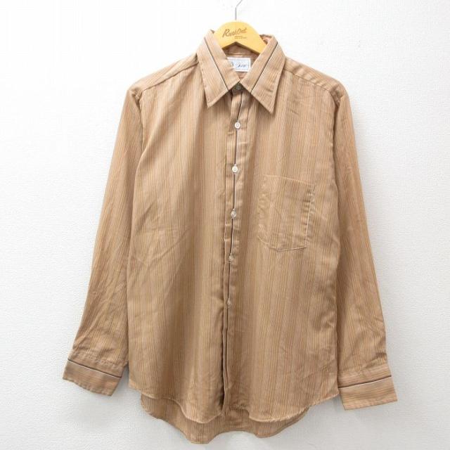 【商品名】 L★古着 アロー 長袖 シャツ メンズ 80年代 80s 黄他 ストライプ