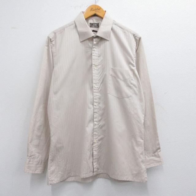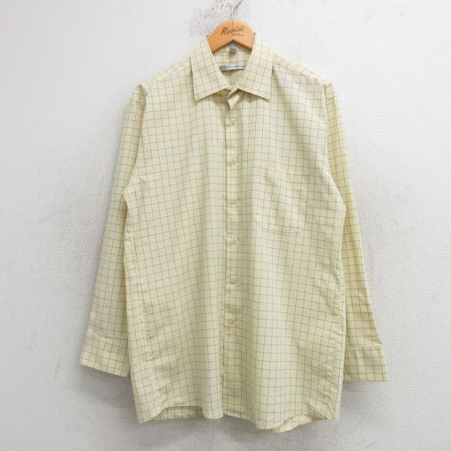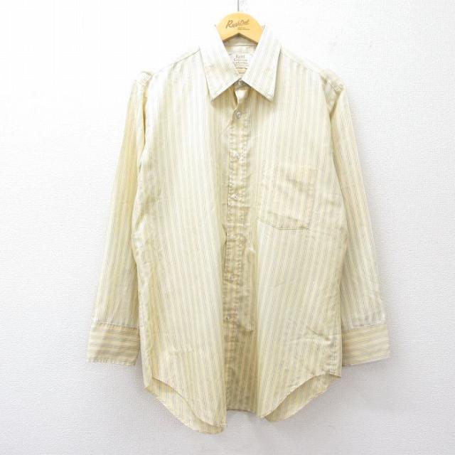 古着 アロー 長袖 シャツ メンズ 80年代 80s 黄他 イエロー ストライプ Lサイズ 中古 トップス 中古 古着