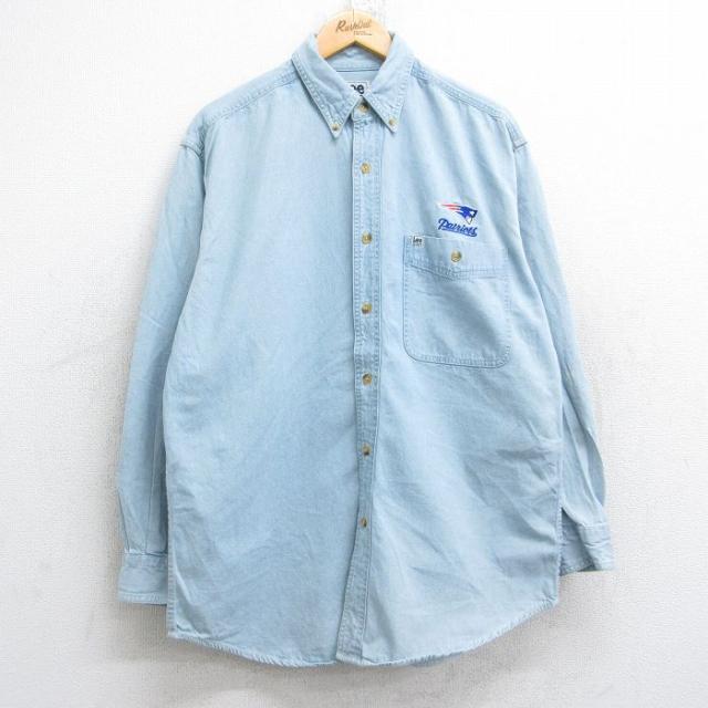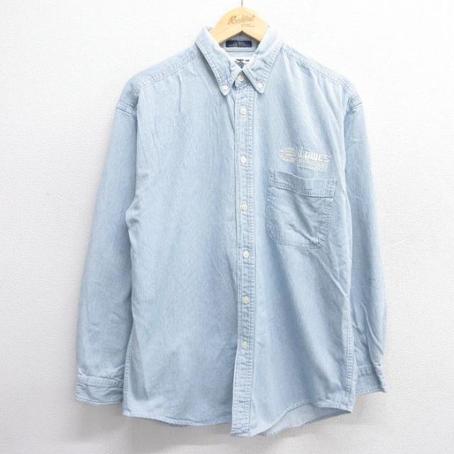 古着 リー Lee 長袖 シャツ メンズ 90年代 90s MLB ニューヨークヤンキース コットン ボタンダウン 薄紺 ネイビー デニム メジ 中古 古着