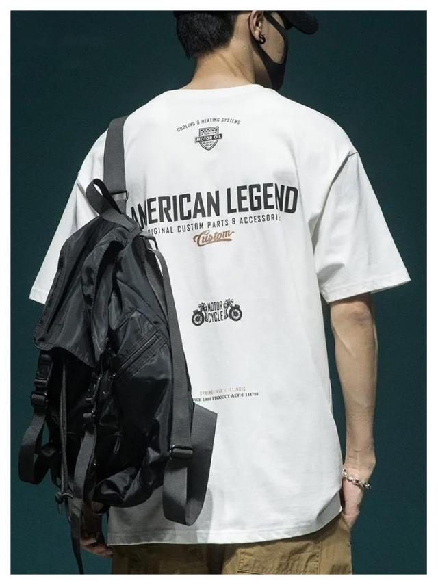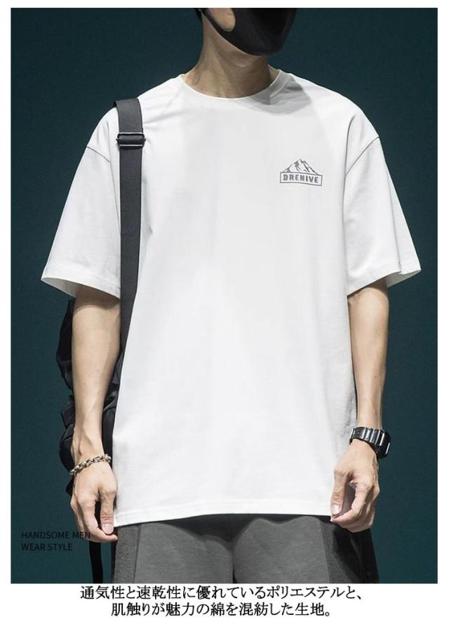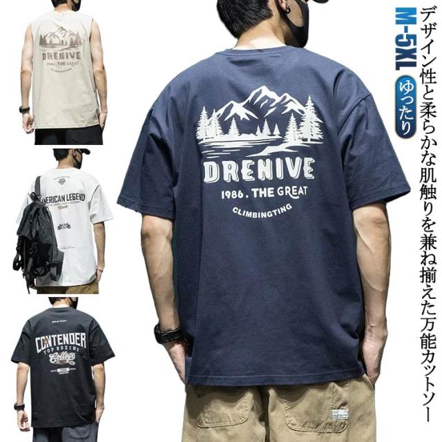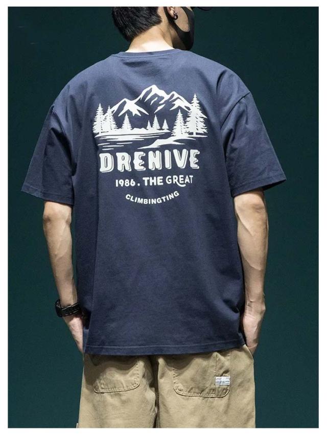 アメカジ 丸首 半袖 カジュアル 送料無料 tシャツ バックプリント 送料無料 古着風 カットソー トップス 英字 レトロ プリント ストリート 山 大人 オーバーサイズ 大きいサイズ グレー 白 黒