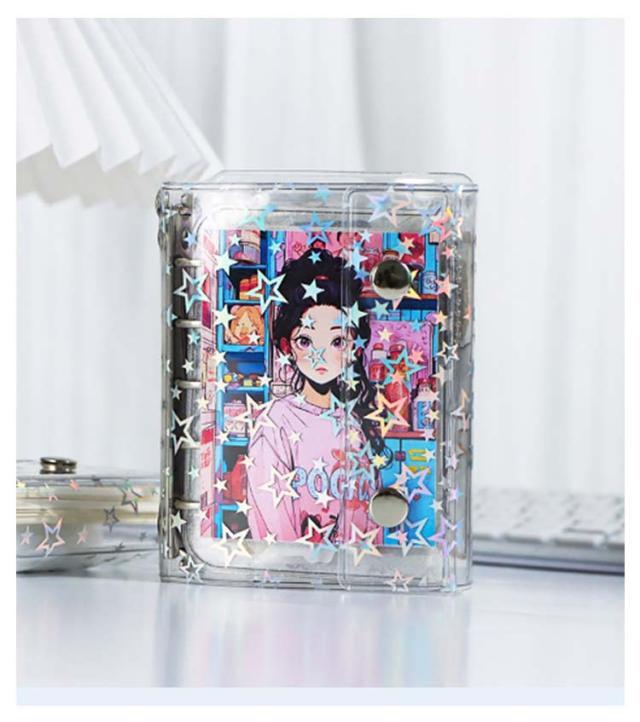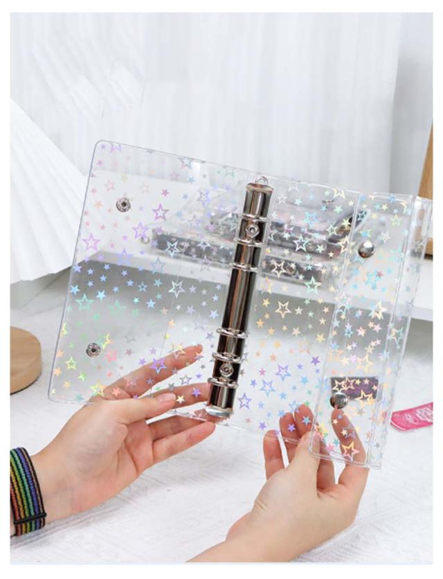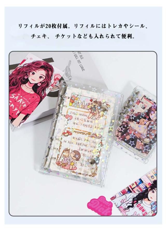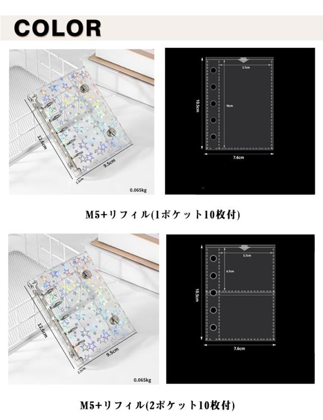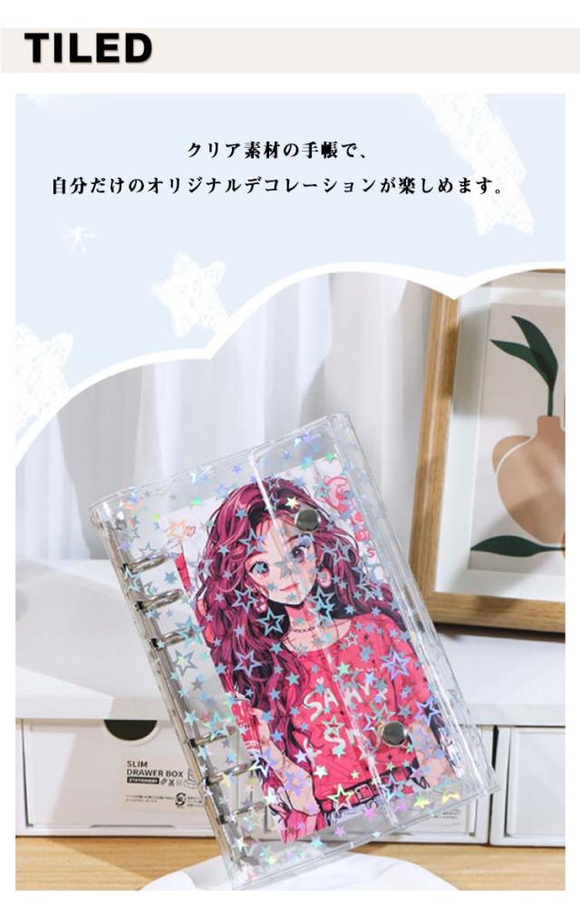 星柄 システム手帳 M5 【リフィル10枚付き】 透明 帳 手帳 透明帳 クリア バインダー 推し活グッズ 手帳型 コンパクト持ち運び アクスタケース A7 トレカ収納 かわいい オタ活グッズ 推し カラー