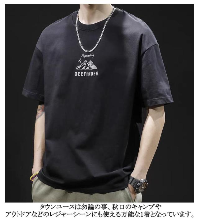 丸首 送料無料 tシャツ 古着風 半袖 送料無料 アメカジ カットソー バックプリント レトロ トップス 山 英字 プリント ストリート カジュアル 大人 オーバーサイズ 大きいサイズ グレー 白 黒