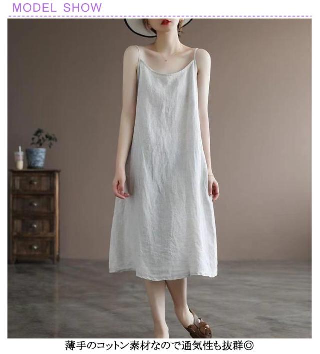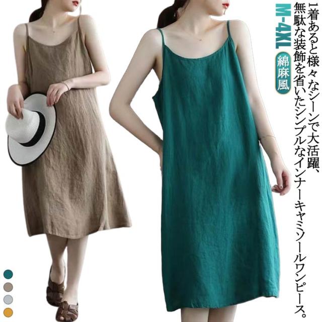 ペチコート ロング キャミワンピース インナーワンピース キャミソールワンピース 秋 春 インナー 綿麻風 夏 ワンピース スリップ キャミ キャミワンピ ワンピ下 カジュアル ナチュラル コットン 透け防止