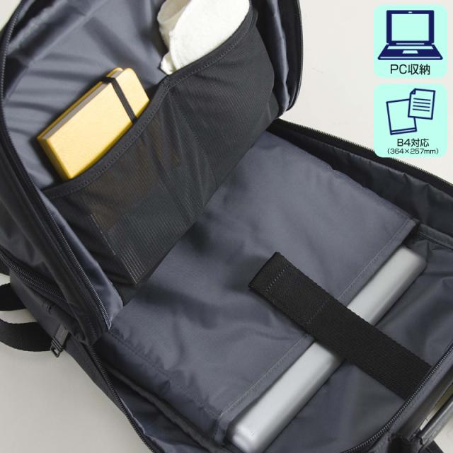 B4対応サイズで、通勤・通学に最適。マチ幅はファスナー開閉で約4cm拡張でき、荷物が増えても安心。